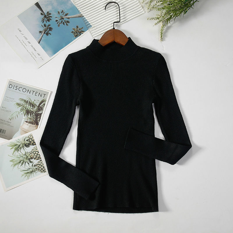 Women Autumn Winter Mock Neck Ruffles Sweater Long Sleeve Knitted Bottoming So